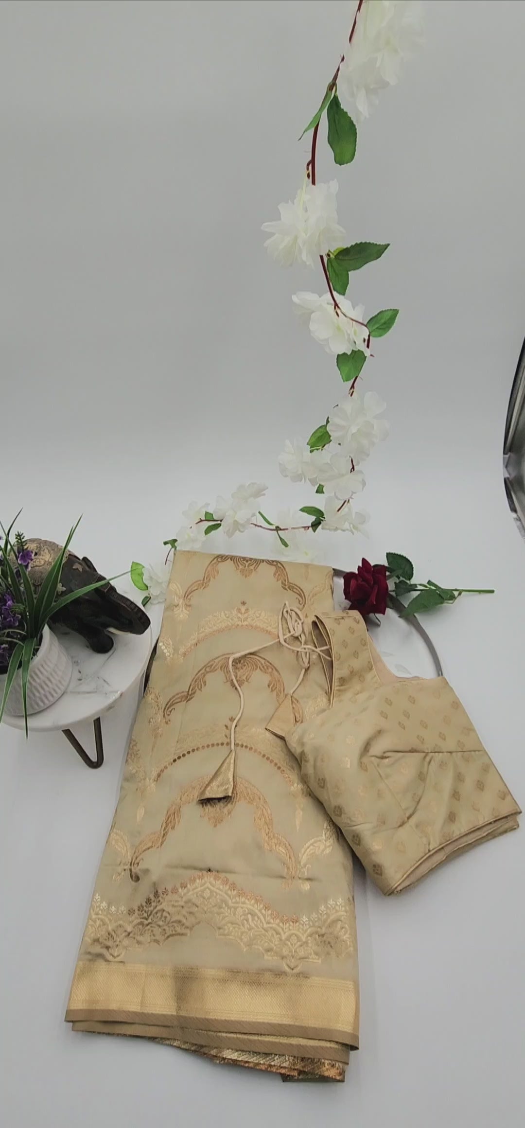 Upgrade your traditional wardrobe with our premium Beige Banarasi Silk Festival Wear Saree. Crafted with high quality material, this saree is a must-have for any festive occasion. Elevate your style with the timeless elegance of Banarasi silk.