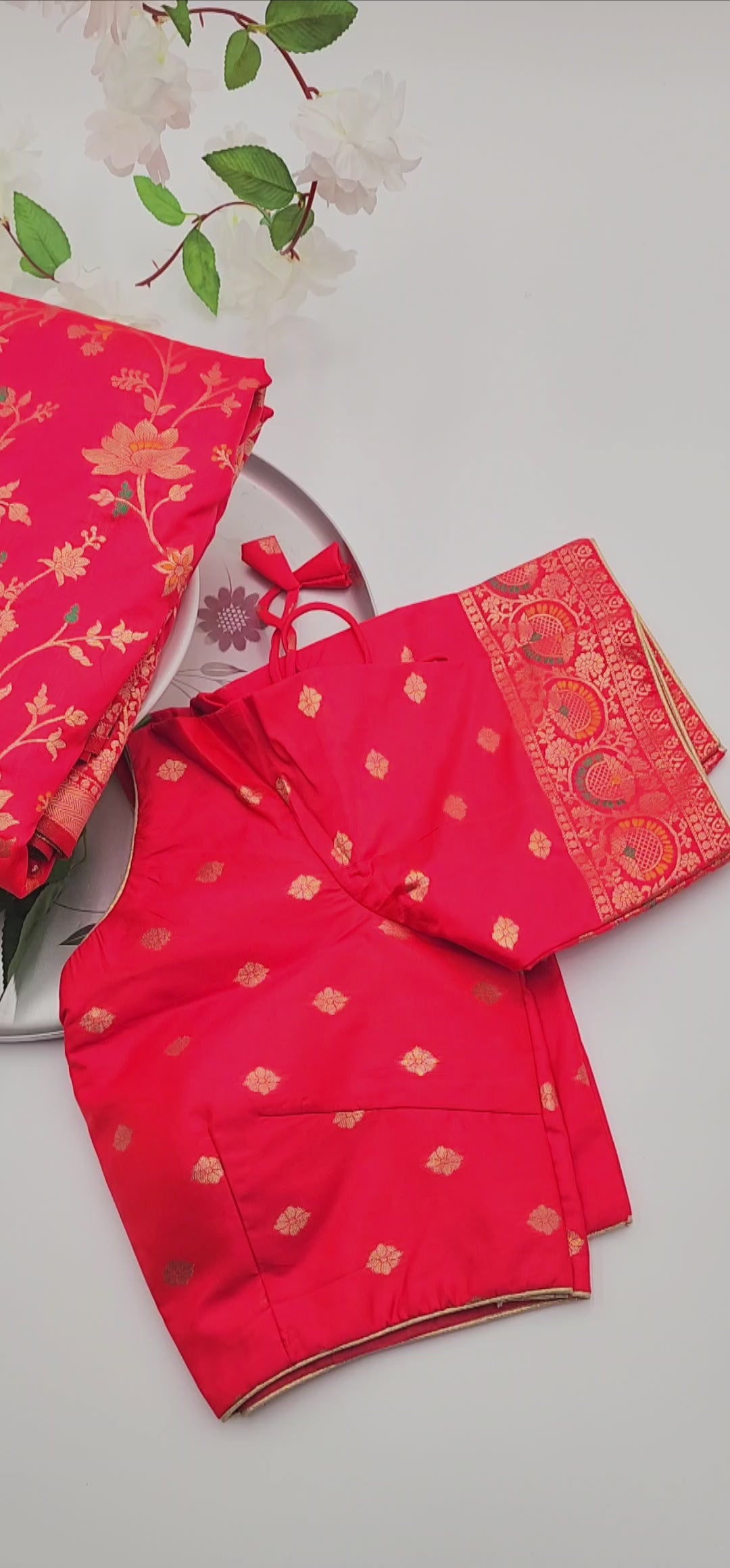 Experience elegance and tradition with our Banarasi Silk-Festival Wear Saree in Pink. Made from luxurious Banarasi silk, this saree features a beautiful floral design, making it perfect for any festive occasion. Embrace style and grace with this timeless piece.