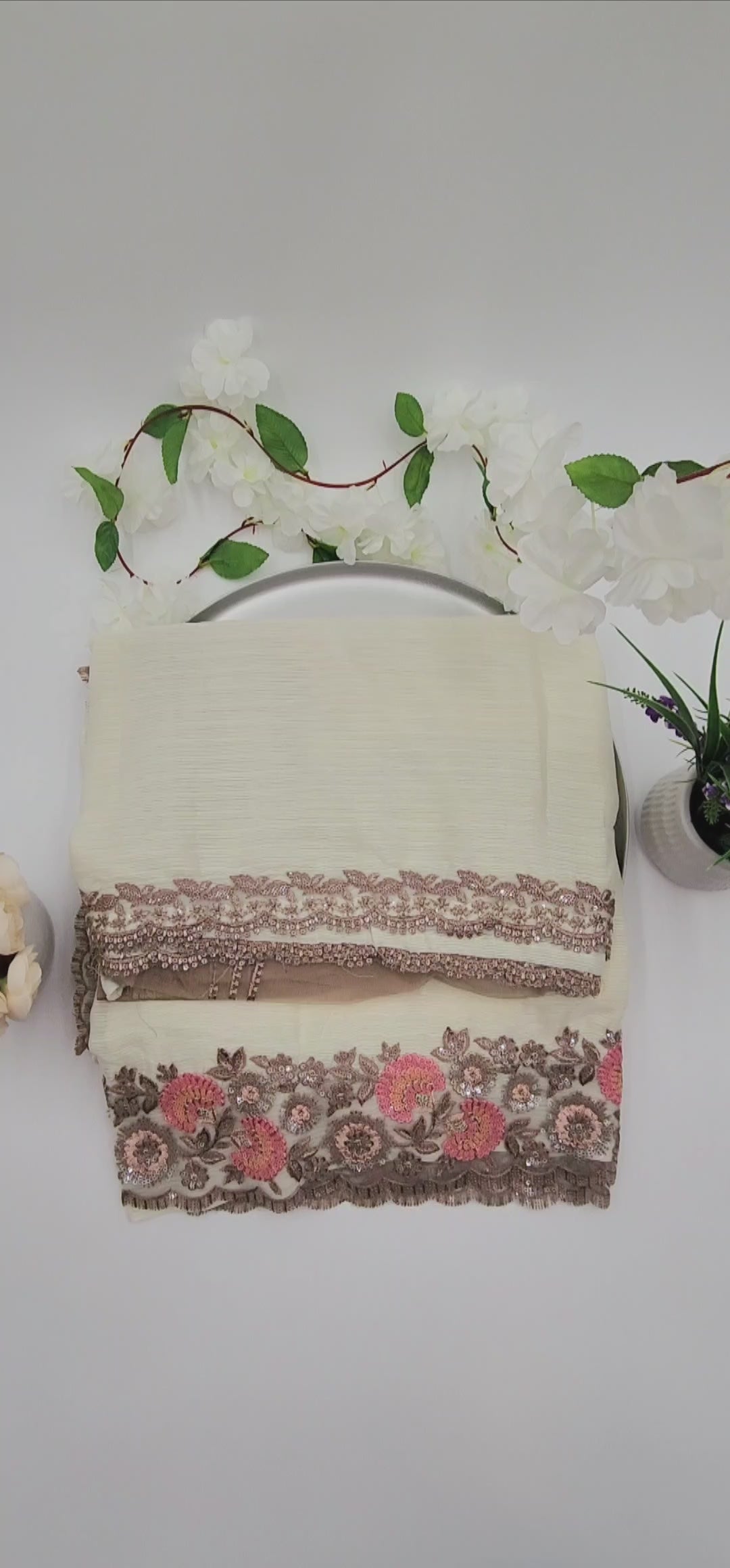 Designer Fancy Partywear Indian Saree Fancy Fabric , Soft Silk White Embroidery works