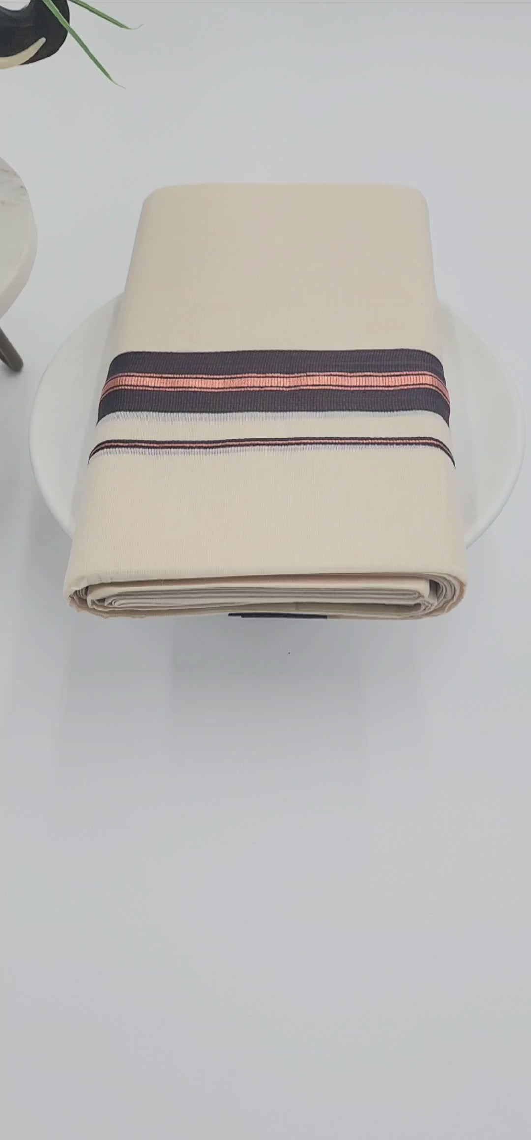 Expertly crafted in traditional South Indian style, this dhoti features a stunning combination of brown and copper borders. Elevate your wardrobe and embrace cultural heritage with this versatile menswear piece.