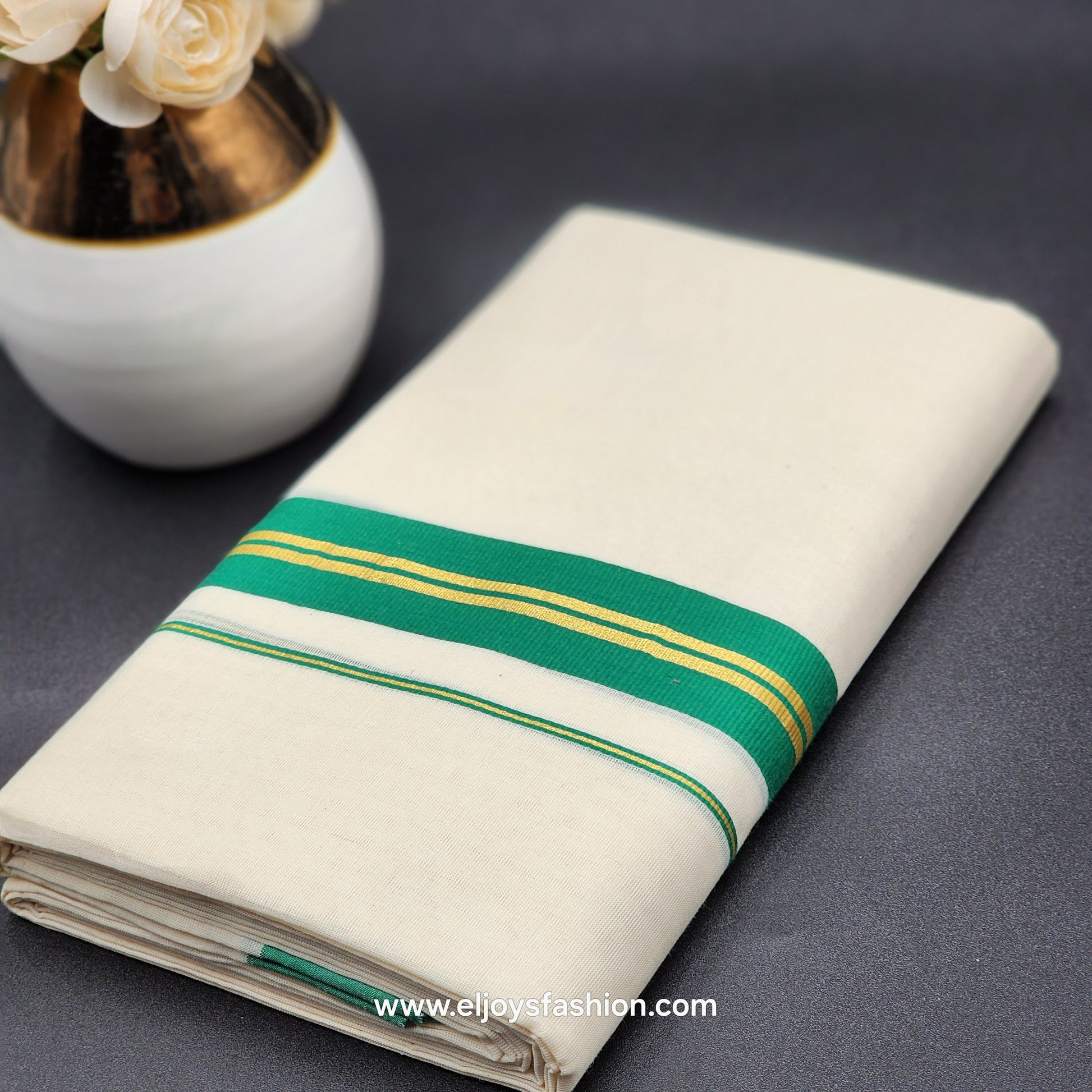 Dhoti(Mundu) South Indian traditional style with green and golden border