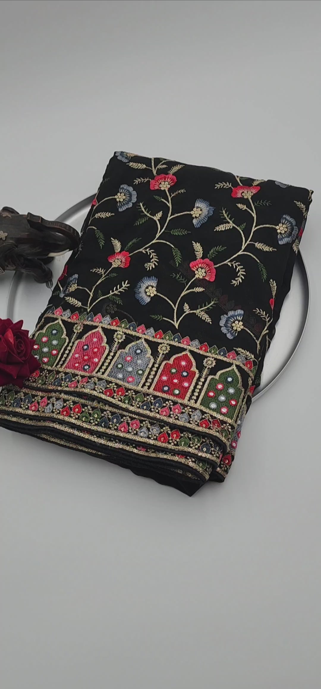 This black Georgette Festival Wear Sequins Work Saree is perfect for all your formal occasions. Made with intricate sequins work, it adds a touch of elegance and style. The Georgette material gives it a lightweight and flowy feel, making it comfortable to wear. Perfect for the fashion-forward woman.