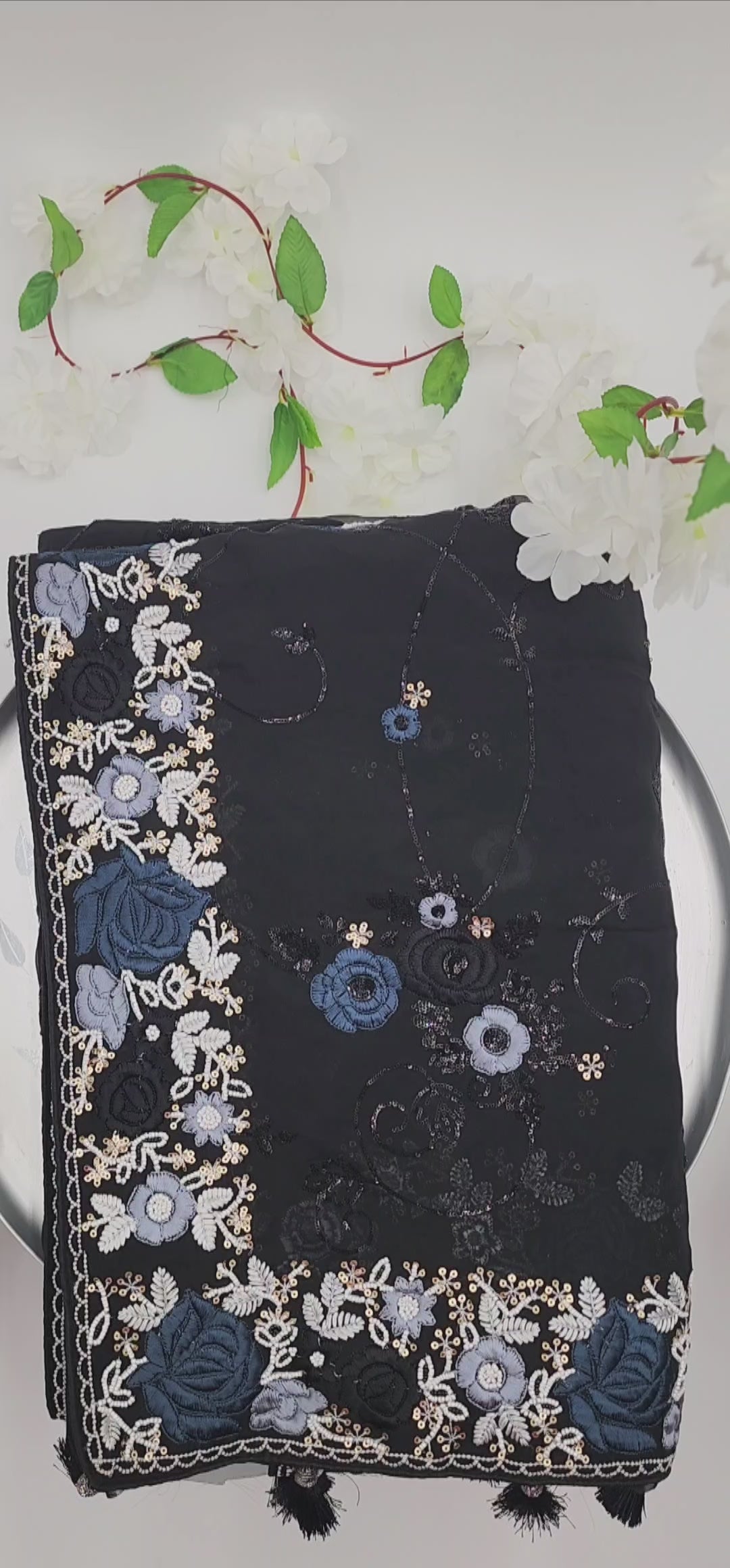 Georgette Saree - Embroidery work Black